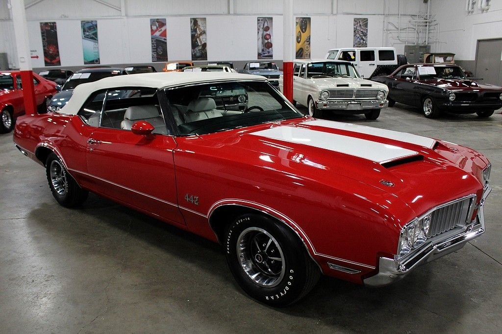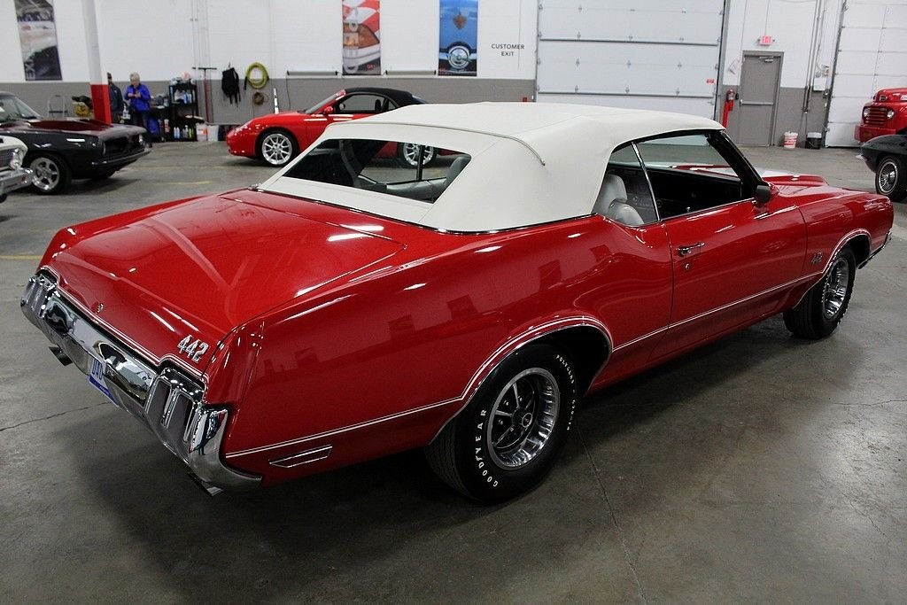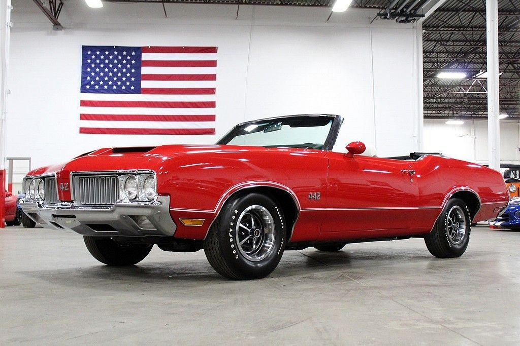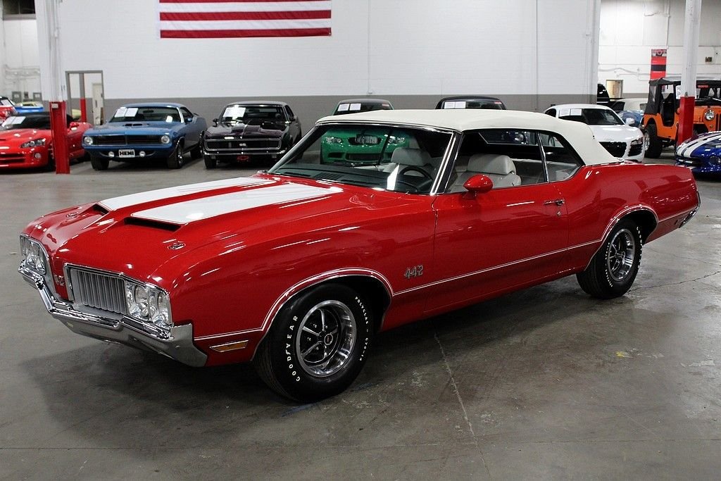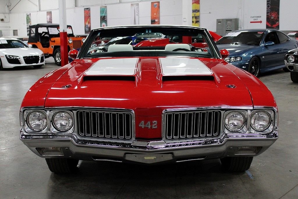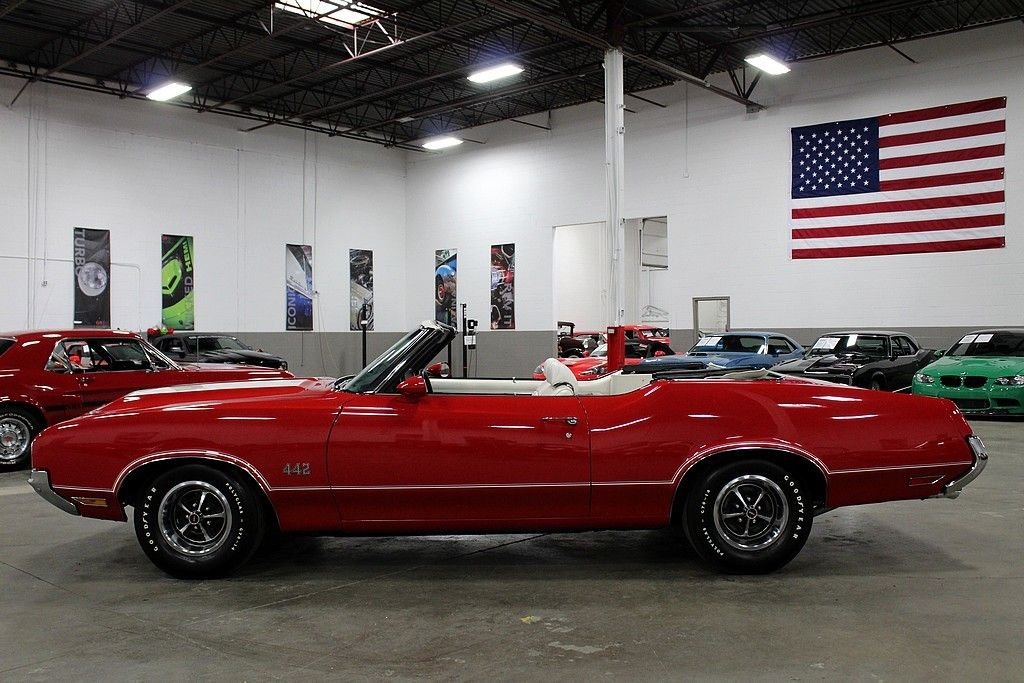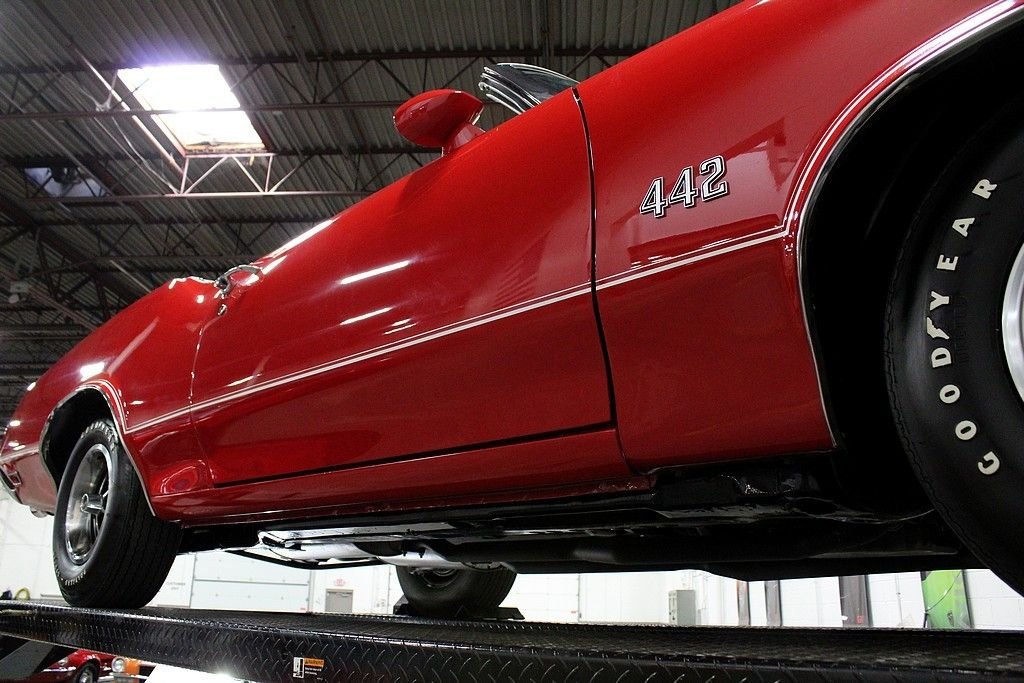 24/7 Motorsis pleased to present this completely restored 1970 Oldsmobile 442. This particular 442 shines brightly in an immaculate red paint job complimented by a clean white convertible top and spotless white interior. The convertible top is in excellent condition and functions as it should. Powering the vehicle is a numbers matching 455 cubic inch V8 motor mated to a 3 speed automatic transmission. A complete rotisserie restoration was completed on this vehicle by the world renowned Hendrick Motorsports in 2015. This vehicle will includes all the original documentation from Hendrick Motorsports. For those not familiar with their work, Hendrick Motorsports is known for restoring vehicles as close to factory new as possible. Factory options include power brakes, power steering and working heat. The 1970 Oldsmobile 442 is one of the most prized muscle cars on the market. This particular 442 is quite possibly one of the best examples on the road. Do not miss your opportunity to own this American classic. Please call or email us today for more information.