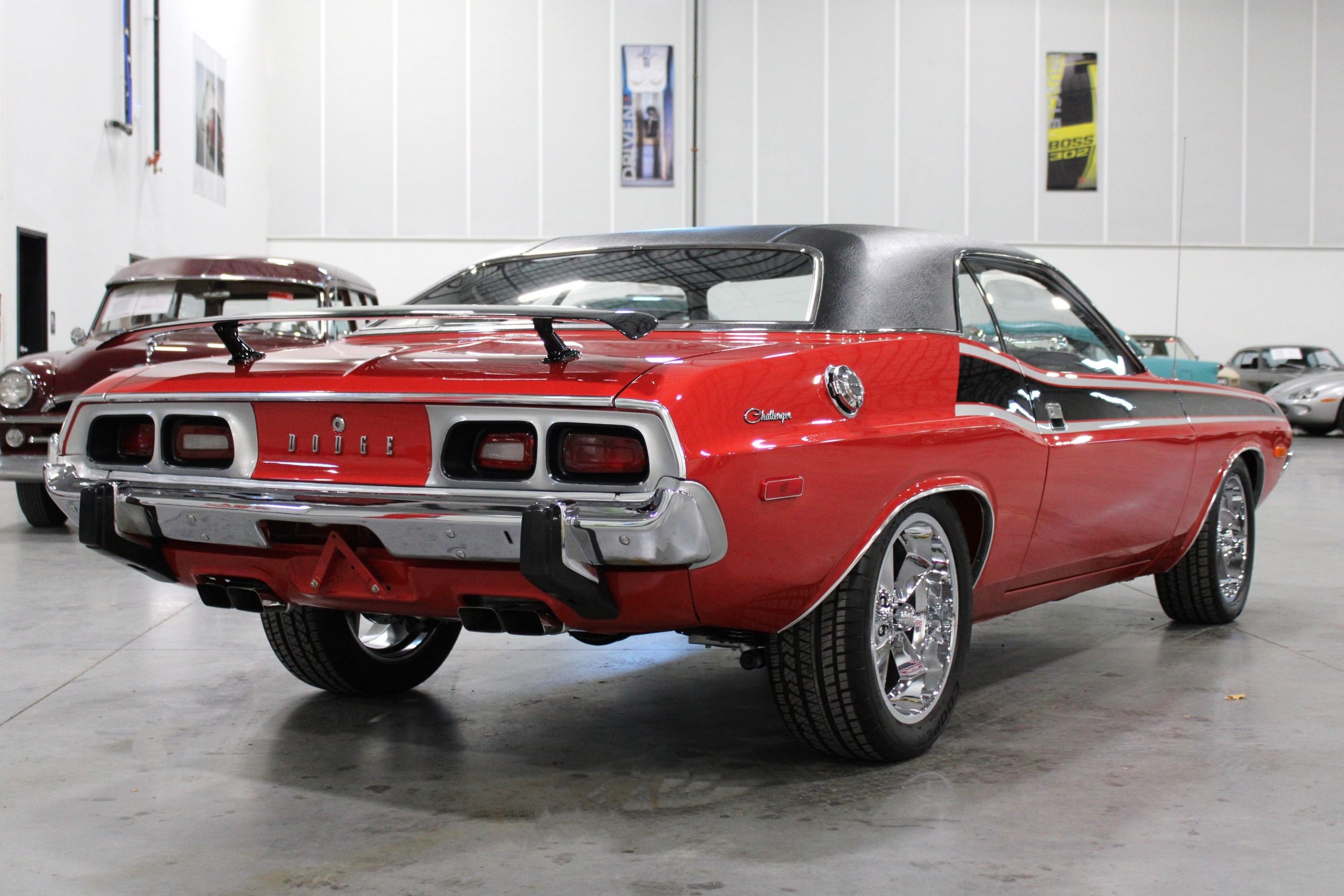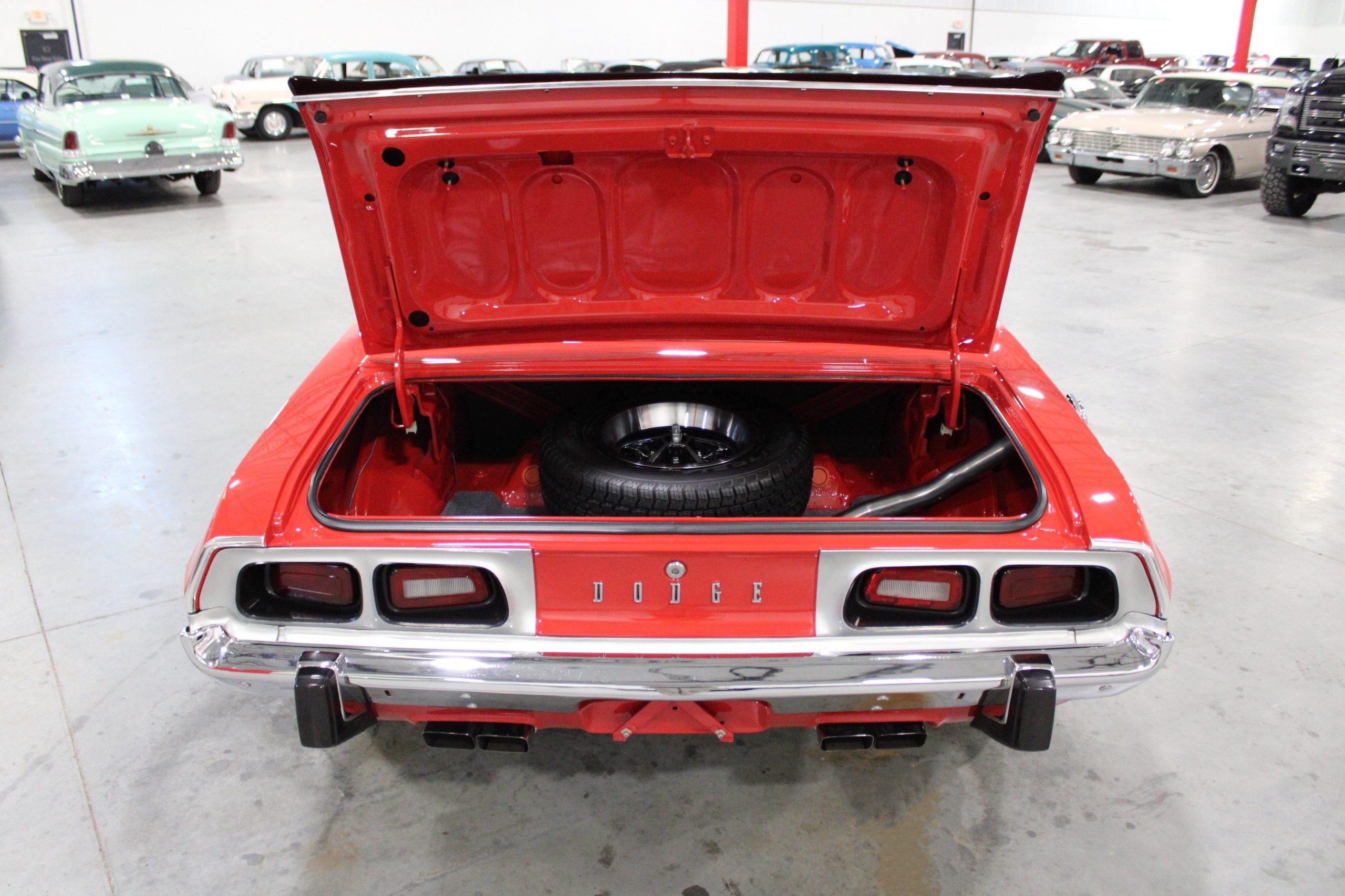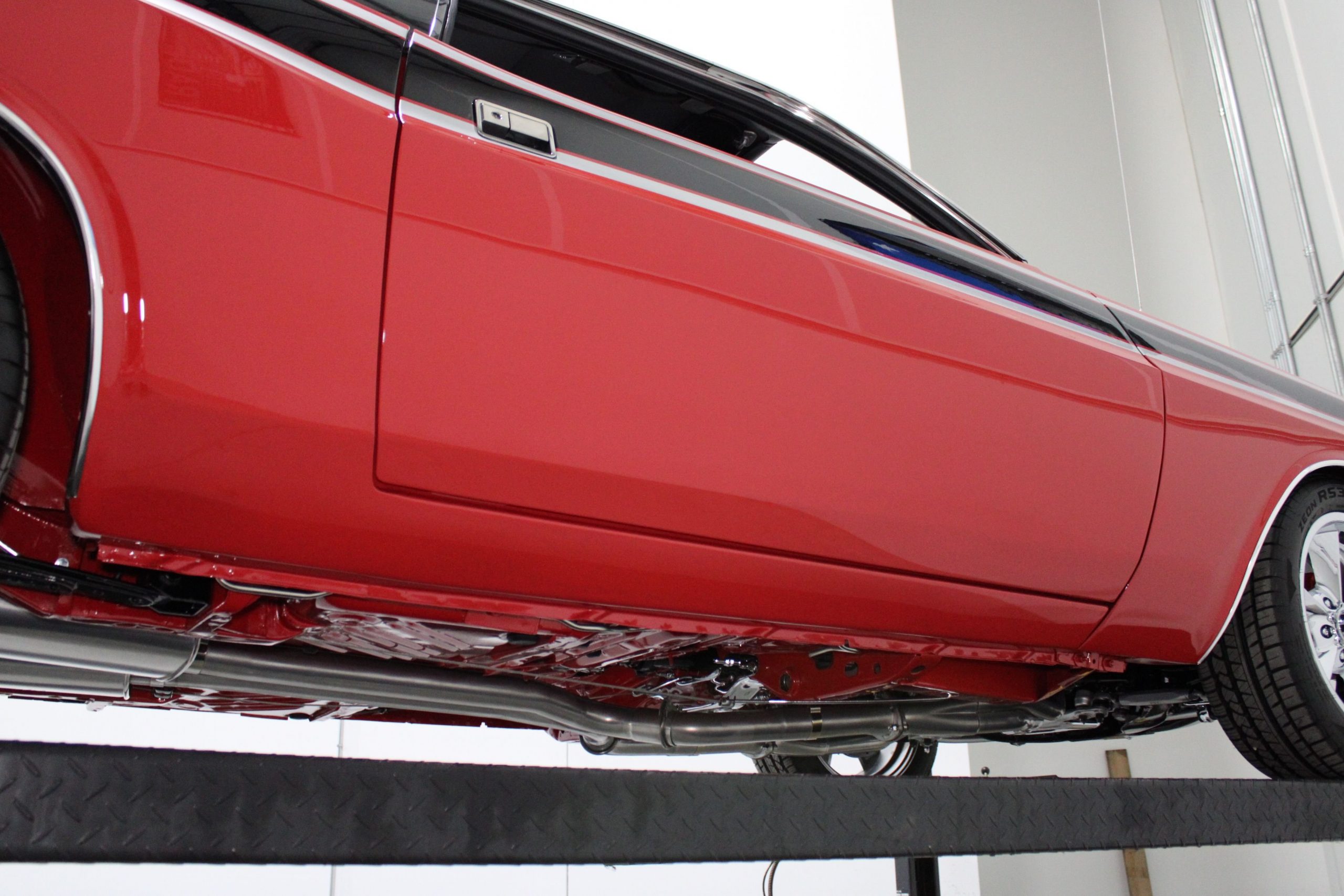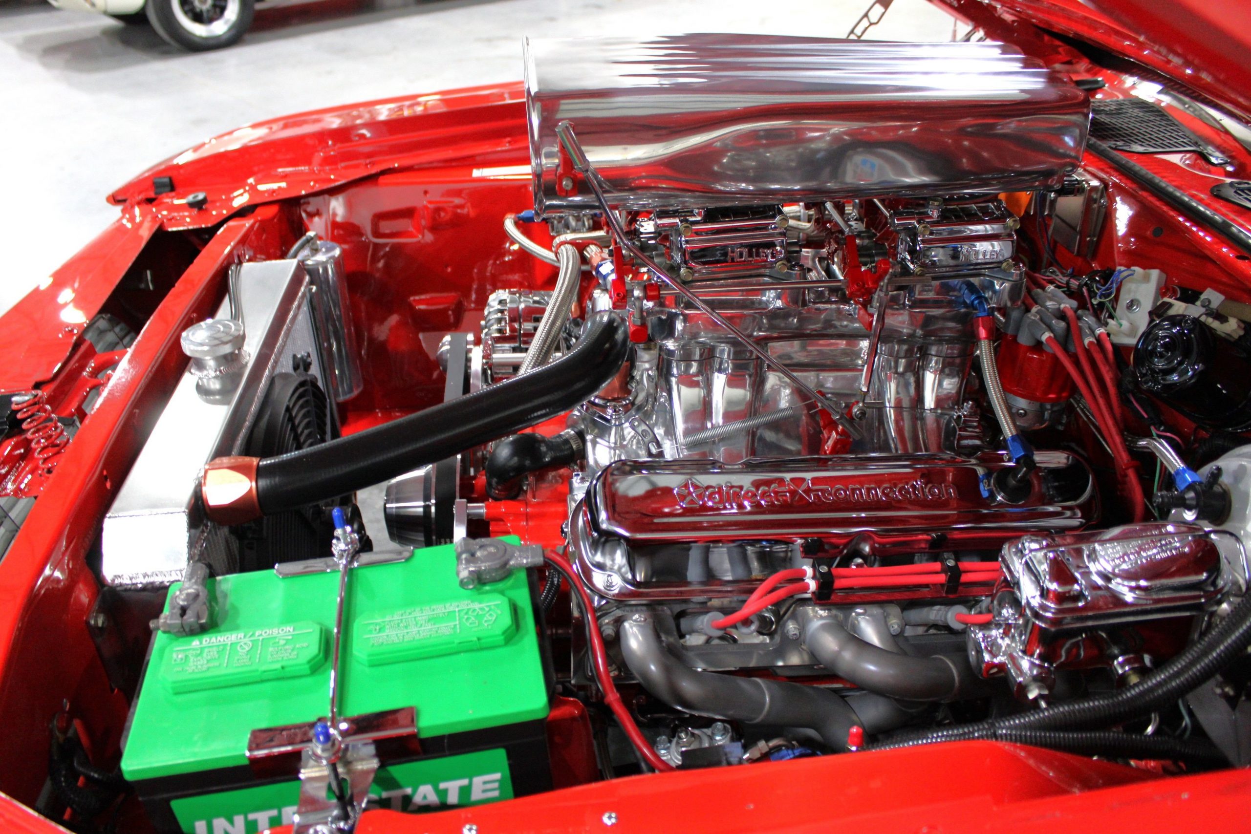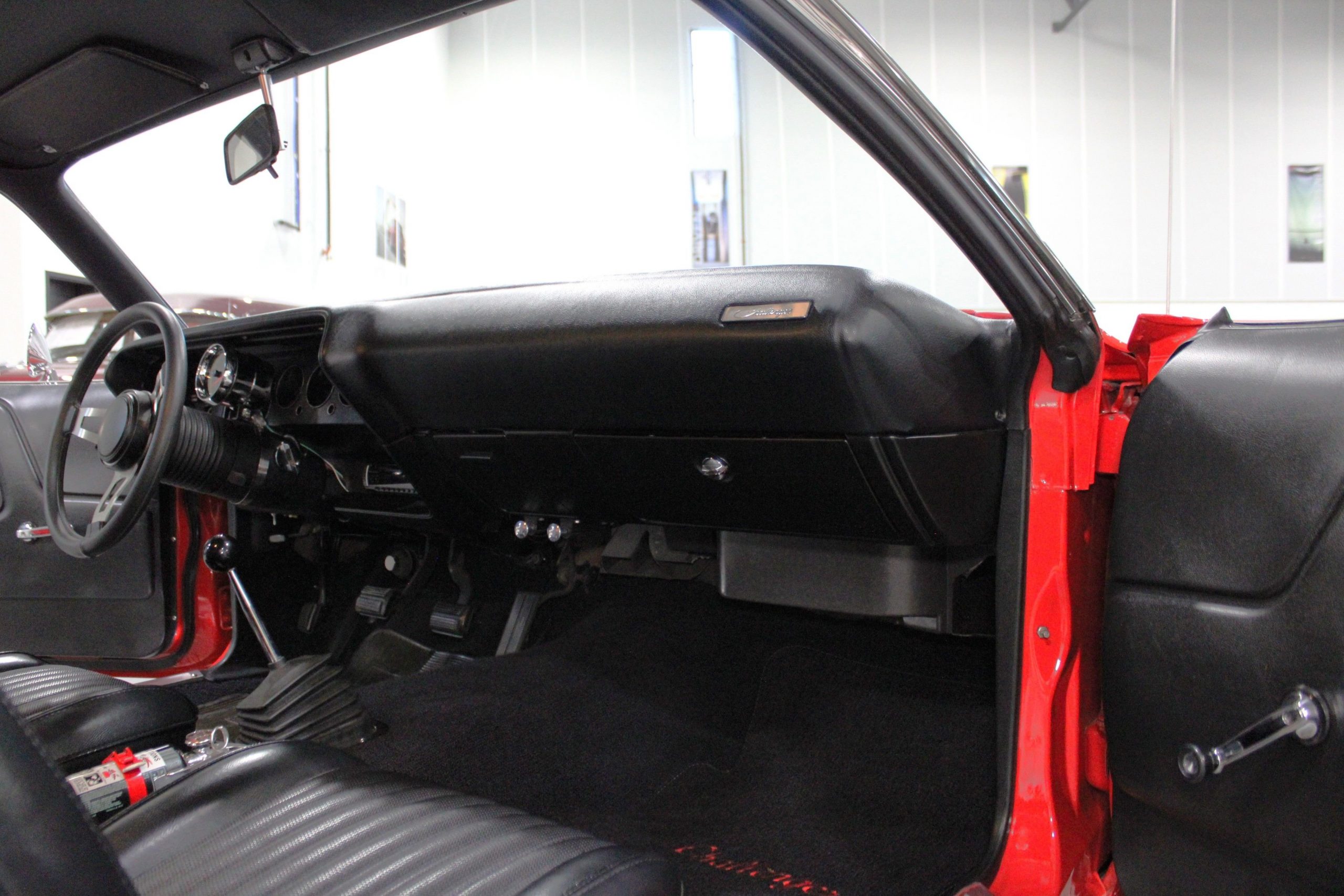24/7 Motorsof is pleased to offer this beautiful 1973 Dodge Challenger for your consideration. This stunning muscle car is a oner owner car. The paint scheme is a design of his own. He chose the factory Bright Red for the base color. On top of that, silver and black stripes were laid out. On top of it all is a brand new black vinyl top. The paint was shot in 2008 and still looks flawless. The interior is a clean and crisp factory black. A fire extinguisher, Autometer tach and an aftermarket radio were added. But under the hood is where the real magic happens. The original 340 was a High Performance 4 Barrel engine but that wasn’t enough. he added a ton of chrome and polished aluminum, along trick parts to make a serious street machine. A polished Edelbrock tunnel ram supports 2 Holley 450’s carbs with chrome bowls, and progressive linkage, a polished Street Scope pokes out of the hood to breathe in all the fresh air. Moving to the cylinder heads, these to are Polished Edelbrock Performer RPM’s to be exact. Chrome Direct Connection valve covers seal everything up. A Comp Cams Thumper hydraulic roller hides inside the 340. A Milidon Gear Drive keeps everything in time. The rest of the engine bay is covered with chrome goodies. The Suspension has plenty of upgrades as well, such as; Wilwood 4 piston disc brakes, chrome master cylinder, new Hotchkis torsion bars, Hotchkis rear springs, chrome driveshaft, chrome hood hinges, and many more items as you can see in the pictures. This has been a great car for the original owner, now it’s time for a new owner. Drive this one out of our showroom or have us assist with shipping it to you anywhere in the United States! Don’t hesitate to give us a call with any questions or for more information.