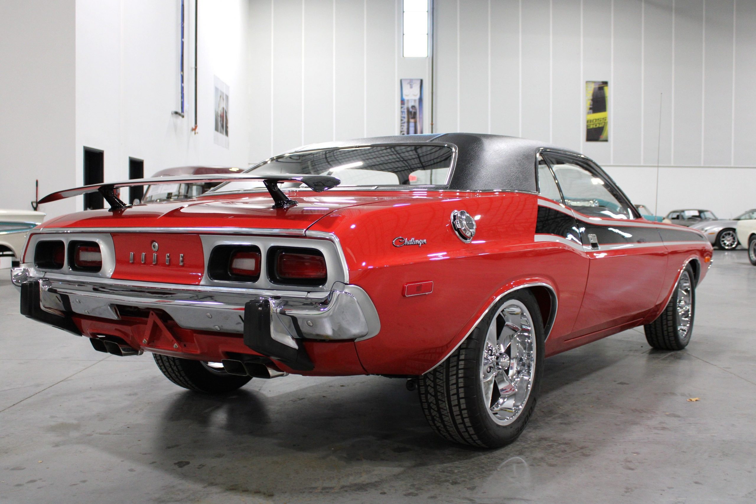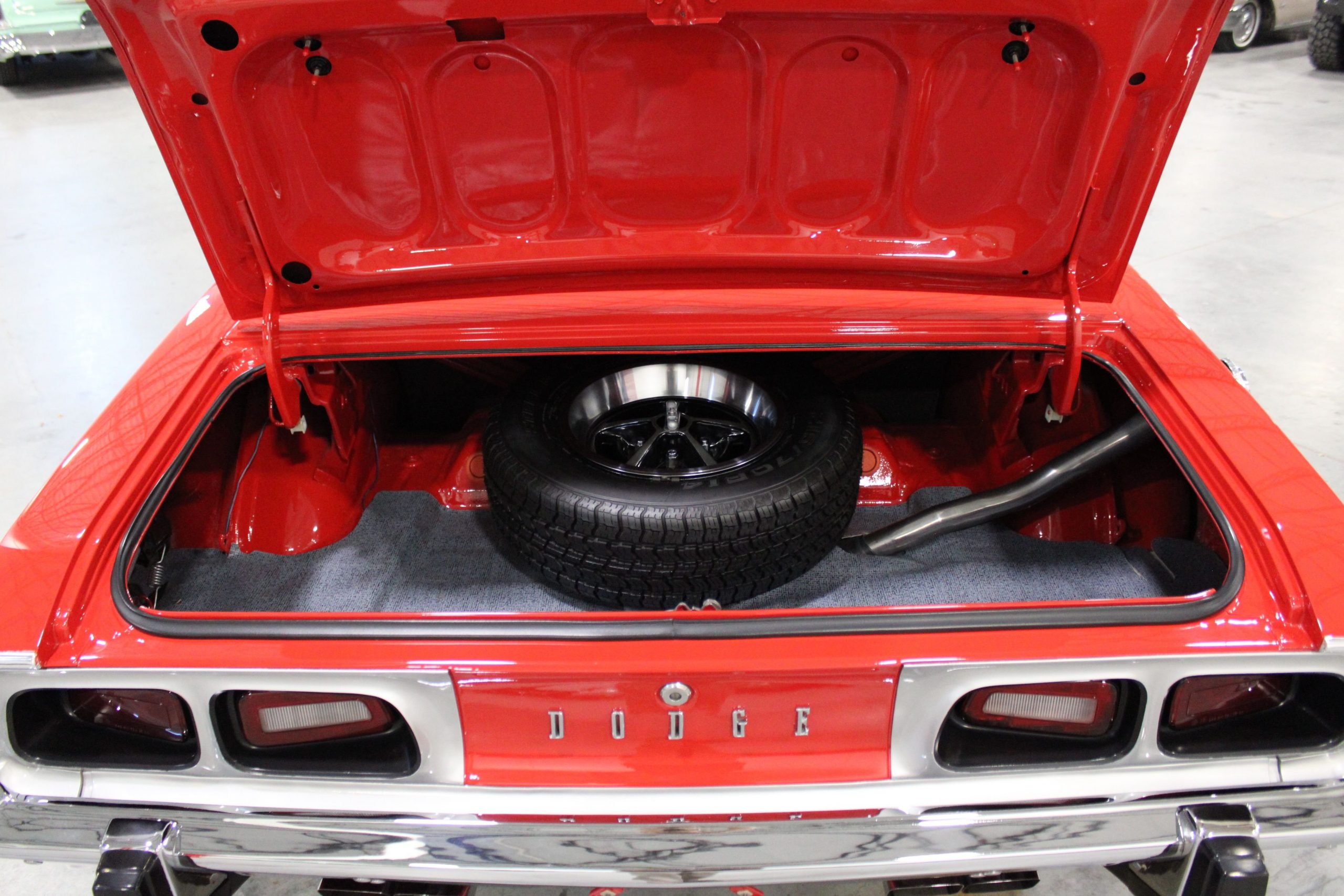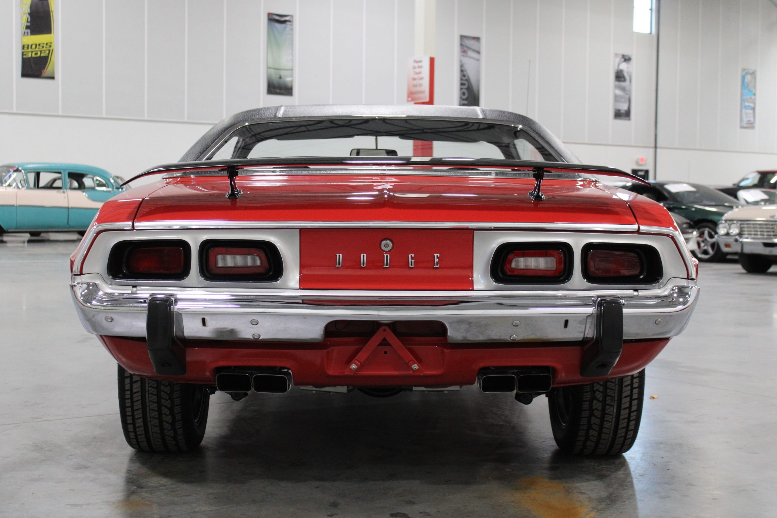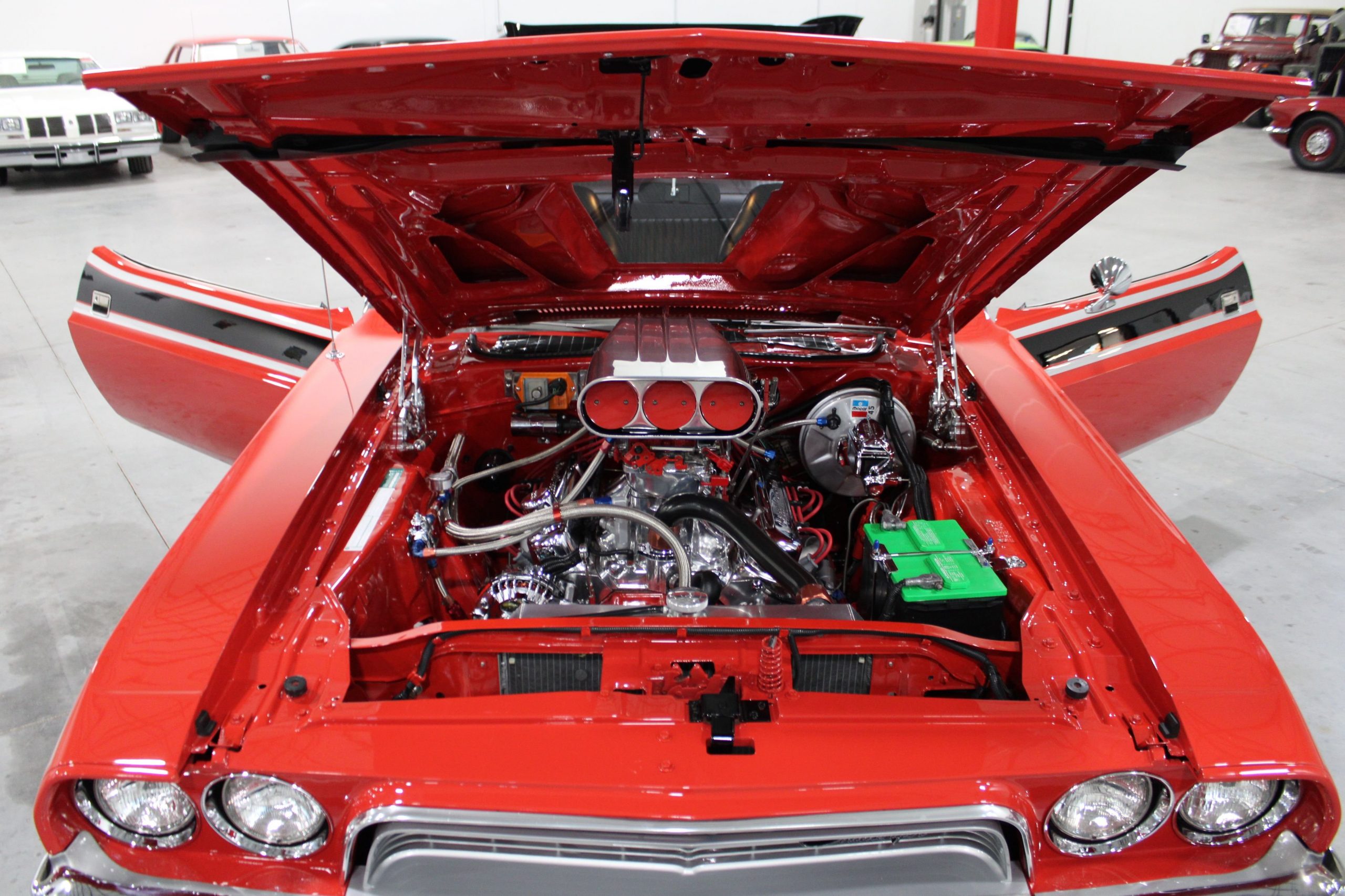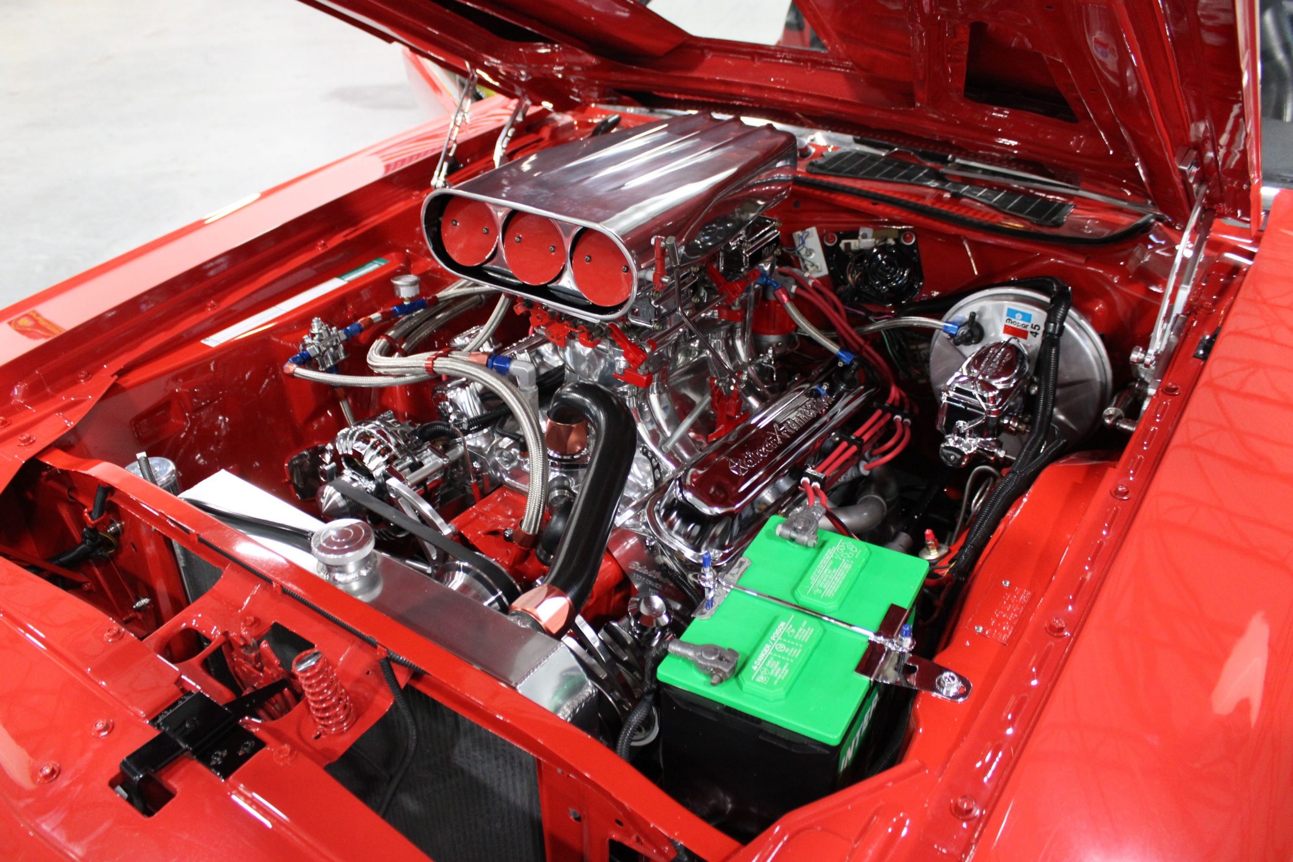 24/7 Motorsof is pleased to offer this beautiful 1973 Dodge Challenger for your consideration. This stunning muscle car is a oner owner car. The paint scheme is a design of his own. He chose the factory Bright Red for the base color. On top of that, silver and black stripes were laid out. On top of it all is a brand new black vinyl top. The paint was shot in 2008 and still looks flawless. The interior is a clean and crisp factory black. A fire extinguisher, Autometer tach and an aftermarket radio were added. But under the hood is where the real magic happens. The original 340 was a High Performance 4 Barrel engine but that wasn’t enough. he added a ton of chrome and polished aluminum, along trick parts to make a serious street machine. A polished Edelbrock tunnel ram supports 2 Holley 450’s carbs with chrome bowls, and progressive linkage, a polished Street Scope pokes out of the hood to breathe in all the fresh air. Moving to the cylinder heads, these to are Polished Edelbrock Performer RPM’s to be exact. Chrome Direct Connection valve covers seal everything up. A Comp Cams Thumper hydraulic roller hides inside the 340. A Milidon Gear Drive keeps everything in time. The rest of the engine bay is covered with chrome goodies. The Suspension has plenty of upgrades as well, such as; Wilwood 4 piston disc brakes, chrome master cylinder, new Hotchkis torsion bars, Hotchkis rear springs, chrome driveshaft, chrome hood hinges, and many more items as you can see in the pictures. This has been a great car for the original owner, now it’s time for a new owner. Drive this one out of our showroom or have us assist with shipping it to you anywhere in the United States! Don’t hesitate to give us a call with any questions or for more information.