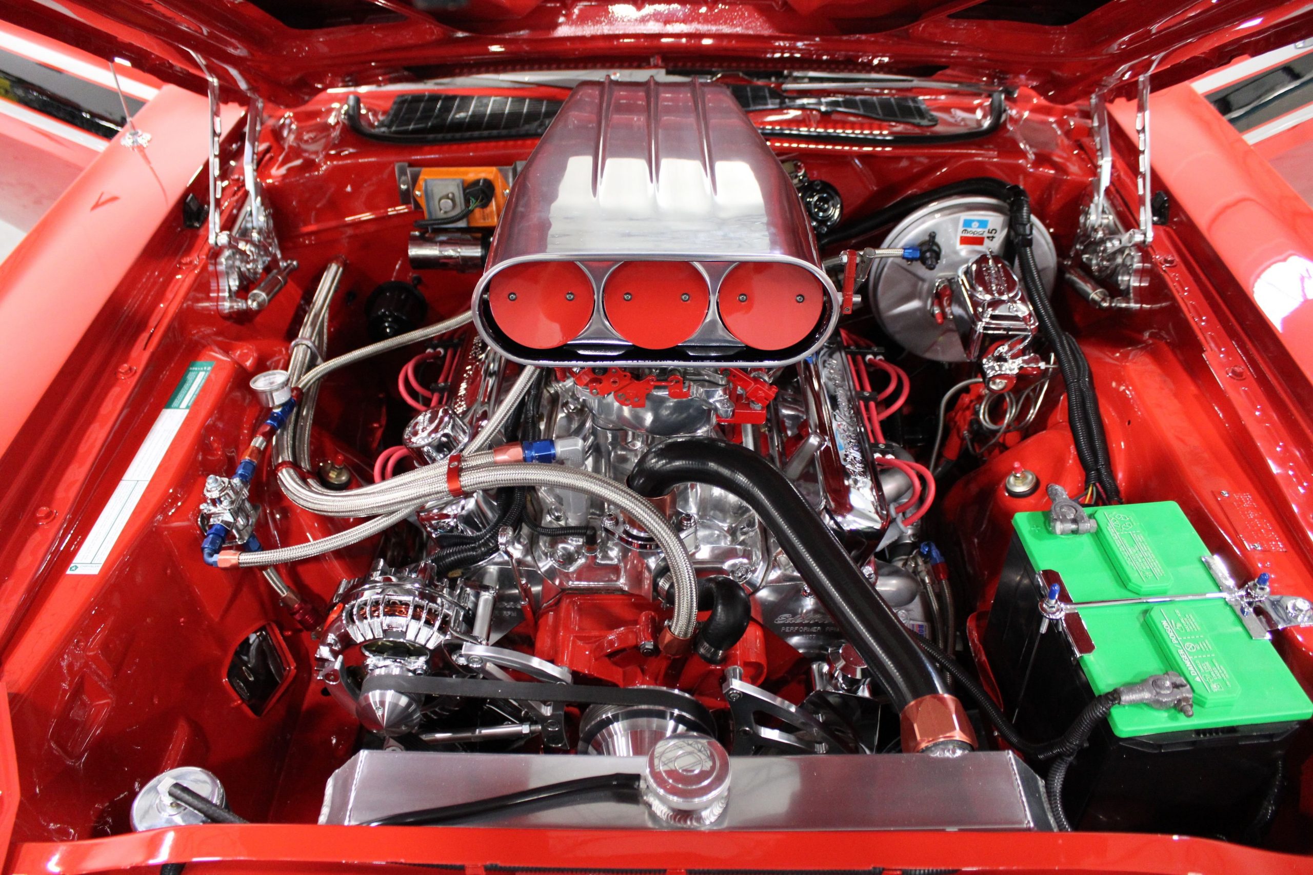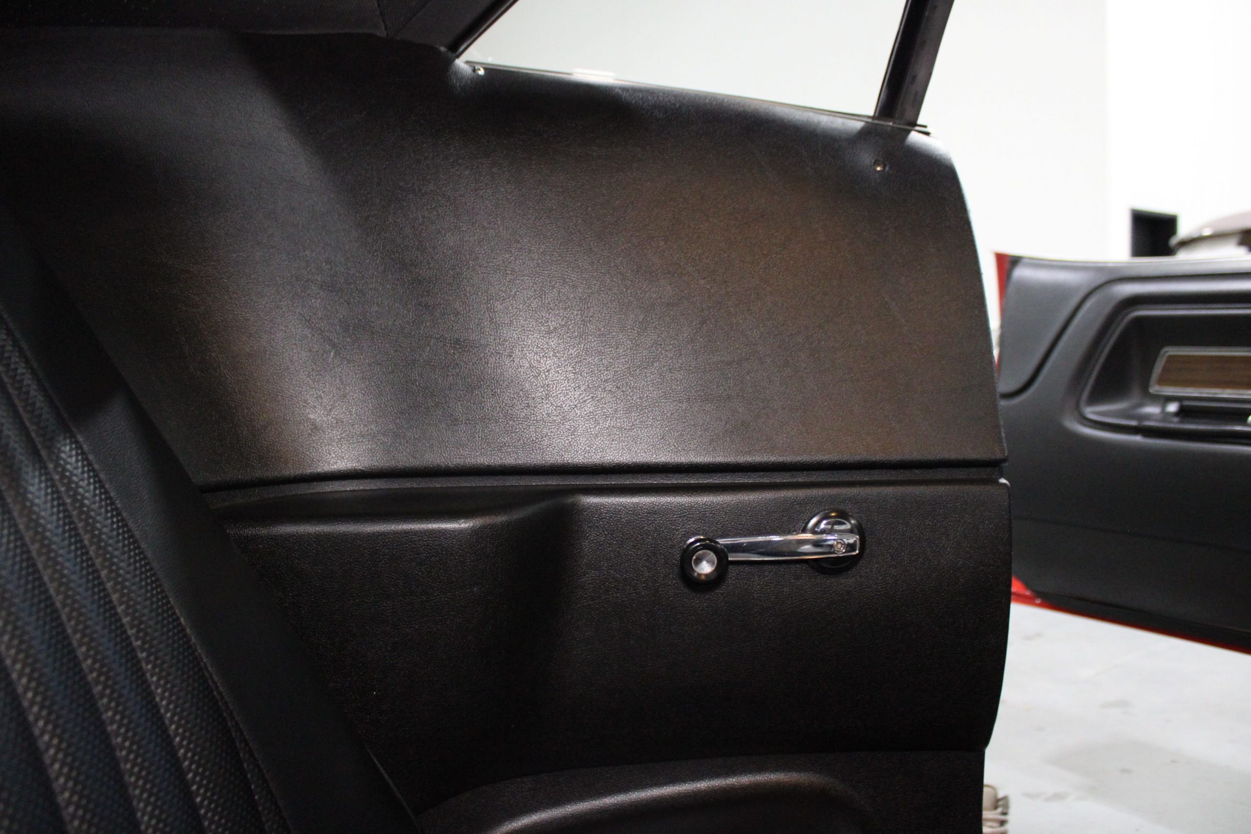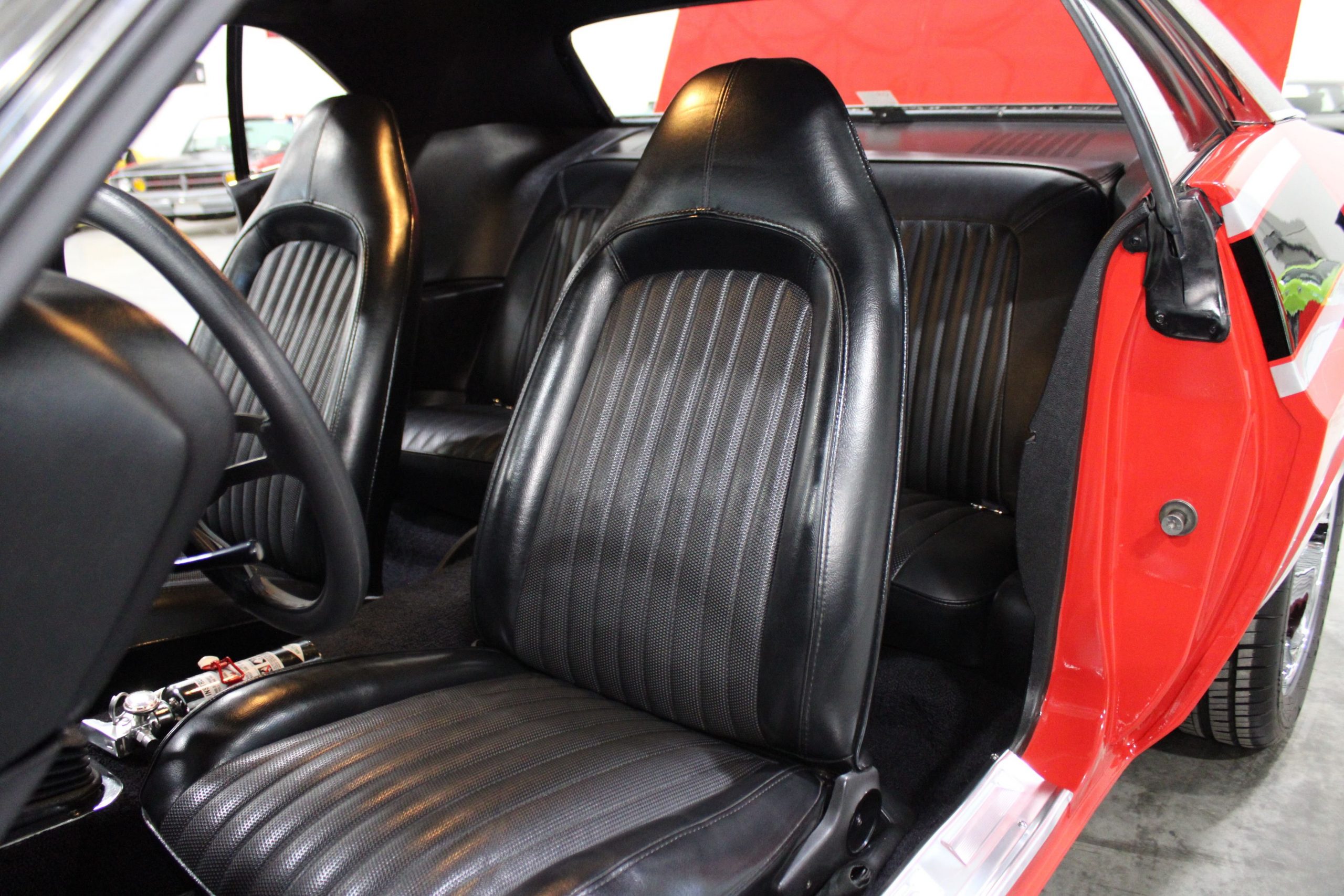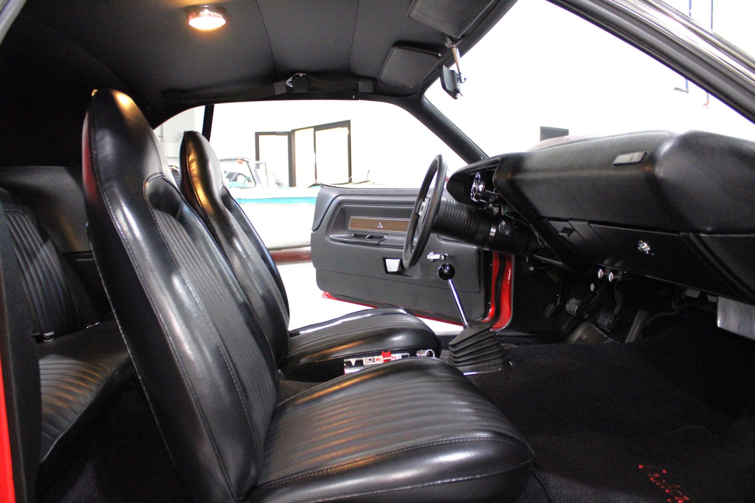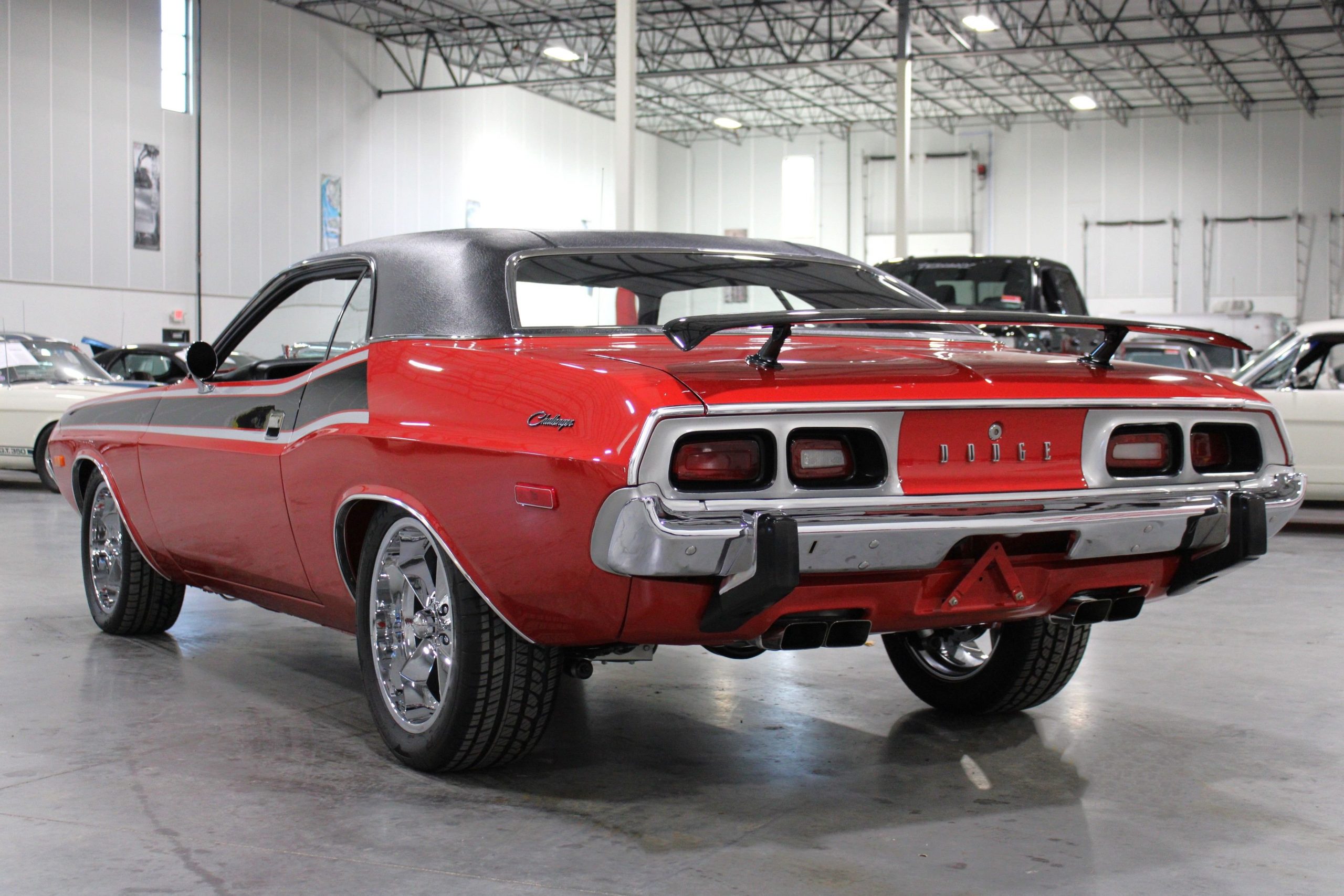 24/7 Motorsof is pleased to offer this beautiful 1973 Dodge Challenger for your consideration. This stunning muscle car is a oner owner car. The paint scheme is a design of his own. He chose the factory Bright Red for the base color. On top of that, silver and black stripes were laid out. On top of it all is a brand new black vinyl top. The paint was shot in 2008 and still looks flawless. The interior is a clean and crisp factory black. A fire extinguisher, Autometer tach and an aftermarket radio were added. But under the hood is where the real magic happens. The original 340 was a High Performance 4 Barrel engine but that wasn’t enough. he added a ton of chrome and polished aluminum, along trick parts to make a serious street machine. A polished Edelbrock tunnel ram supports 2 Holley 450’s carbs with chrome bowls, and progressive linkage, a polished Street Scope pokes out of the hood to breathe in all the fresh air. Moving to the cylinder heads, these to are Polished Edelbrock Performer RPM’s to be exact. Chrome Direct Connection valve covers seal everything up. A Comp Cams Thumper hydraulic roller hides inside the 340. A Milidon Gear Drive keeps everything in time. The rest of the engine bay is covered with chrome goodies. The Suspension has plenty of upgrades as well, such as; Wilwood 4 piston disc brakes, chrome master cylinder, new Hotchkis torsion bars, Hotchkis rear springs, chrome driveshaft, chrome hood hinges, and many more items as you can see in the pictures. This has been a great car for the original owner, now it’s time for a new owner. Drive this one out of our showroom or have us assist with shipping it to you anywhere in the United States! Don’t hesitate to give us a call with any questions or for more information.
